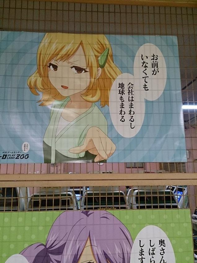 Dọc theo khu điện tử xèng (Metro Playland Zoo) ở một trung tâm mua sắm ở Kobe, Nhật Bản, người ta bắt gặp hàng loạt các poster phong cách anime với nhiều ý nghĩa khiêu khích, chế nhạo “một bộ phận người trong xã hội”, mà cụ thể ở đây là những người không có công ăn việc làm tử tế.