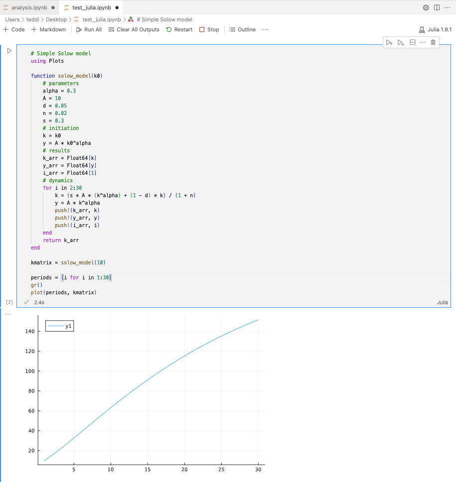 Đây là 2 ngôn ngữ lập trình hướng đối tượng được sử dụng phổ biến nhất hiện nay, nói thẳng ra là làm gì cũng được, bất kể lý thuyết hay kinh tế lượng. Python có thư viện numpy, scipy, và sympy đồ sộ nên không sợ phải xử lý toán. có chăng là việc vẽ biểu đồ sẽ không tinh chỉnh được đẹp và tỉ mẩn như MatLab. Julia gần đây đã được Fed sử dụng làm ngôn ngữ chính thức rồi nên chúng ta cũng cần học dần để tiếp cận thời đại. Ngoài ra, cả Python và Julia đều được Jupyter Notebook và VSCode hỗ trợ nhé. Mình nghĩ xài VSCode có tích hợp Git là quá ư đủ.